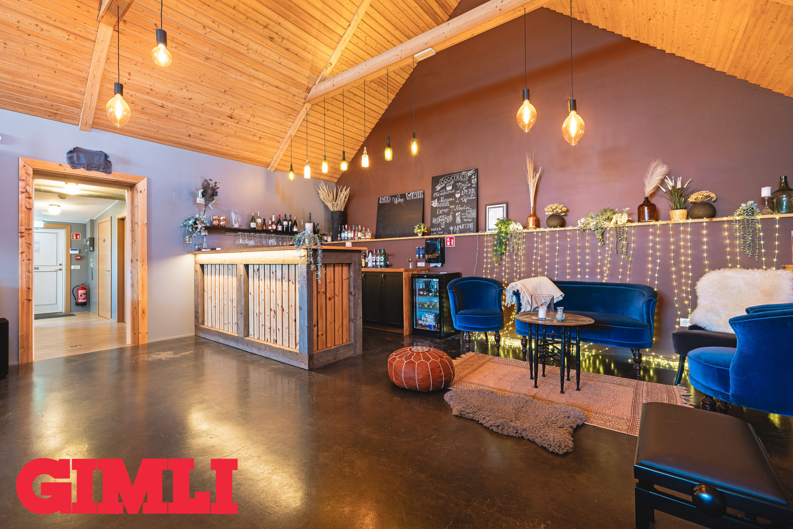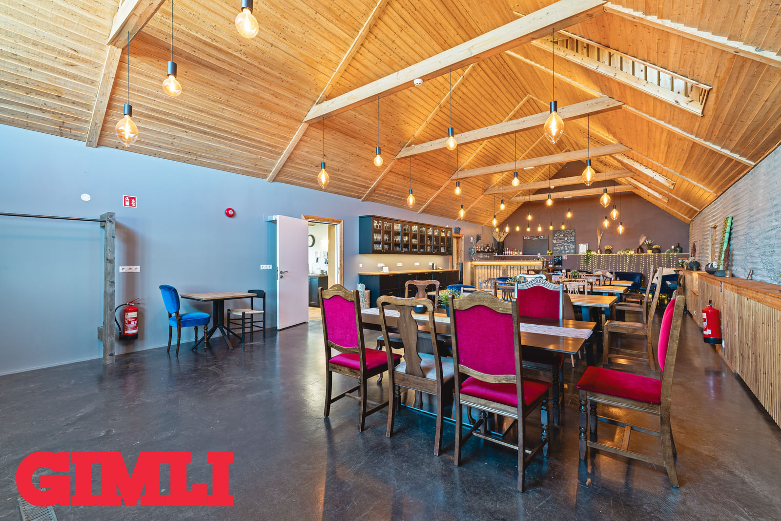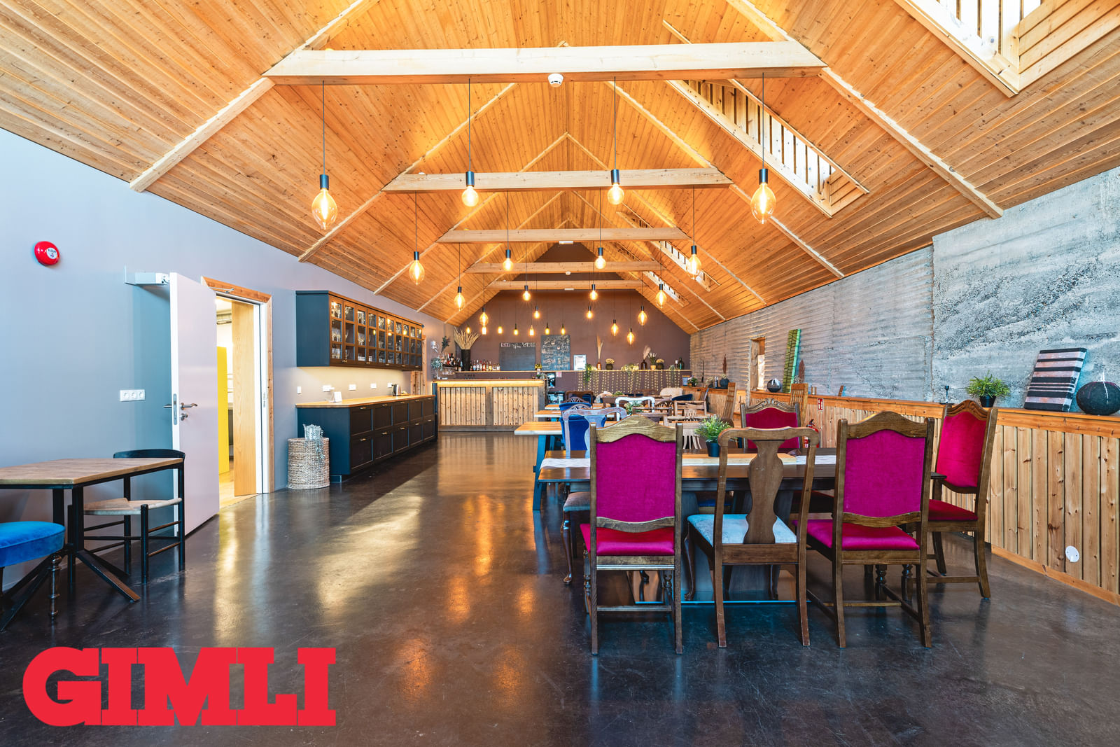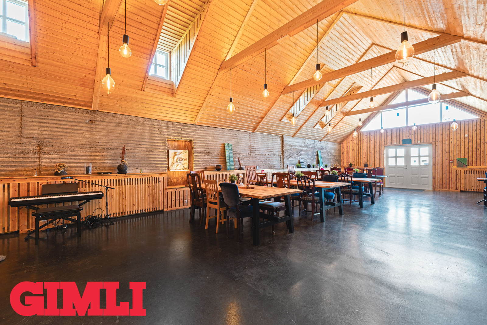 Veitingahúsið /samkomuhúsið sem er 204 fm og hefur verið nýtt sem hús til samkomu og námskeiðahalds er allt endurnýjað að utan sem innan og skiptist í stóran veitingasal með mikilli lofthæð, bar í því rými.  Stórt eldhús með sex eldunarstöðvum, stór eyja og allt mjög vel tækjum búið. Gott loftræstikerfi og öll tæki sem afkastamikil eldhús þurfa.