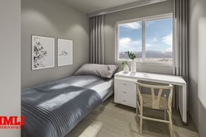 Gimli fasteignasala kynnir 3ja herbergja íbúð á þriðju hæð með sérinngangi af svölum í vönduðu lyftuhúsi. Íbúðin sem er skráð samtals 78,2 fm að stærð (5,3 fm geymsla með glugga innan íbúðar sem getur nýst sem skrifstofa/svefnherbergi) skilast fullfrágengin án gólfefna á meginrýmum en gólf votrýma verða flísalögð. Innréttingar og skápar frá HTH. Eldhúsinnrétting er tvítóna, með dökkri viðaráferð á efri skápum og ljósum neðri skápum. Aðrar innréttingar eru ljósar. Heimilistæki frá Ormsson, helluborð, ofn, háfur og innbyggð uppþvottavél. Innihurðir eru með mattri hvítri áferð og eru yfirfelldar. Gólf á baðherbergi er flísalagt og veggir flísalagðir að hluta, flísar eru frá Álfaborg. Á baðherbergi er upphengt salerni, sturta, vegleg vaskinnrétting, speglaskápur og innrétting fyrir þvottavél og þurrkara. Húsið er byggt úr forsteyptum einingum með staðsteyptum milliplötum.