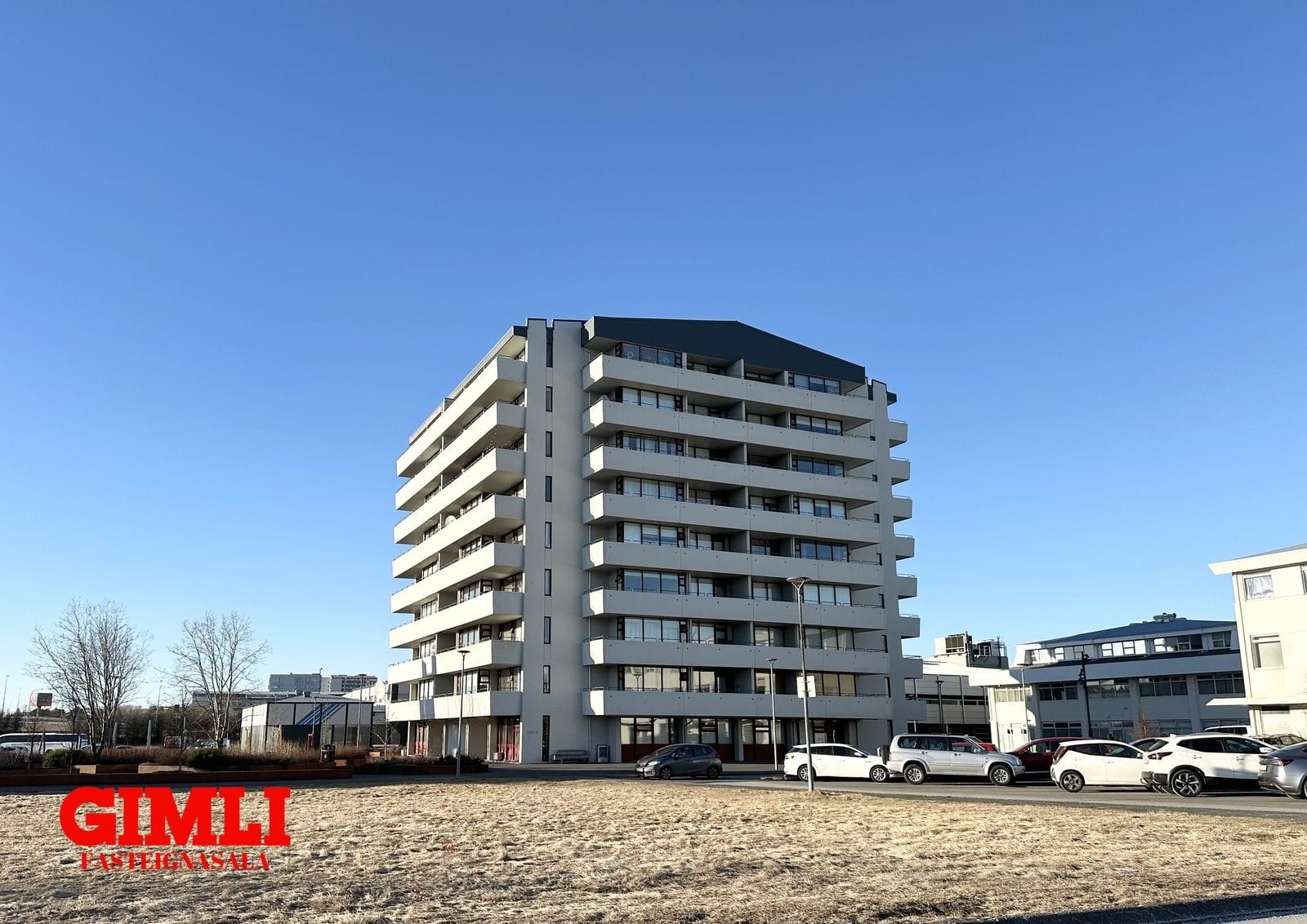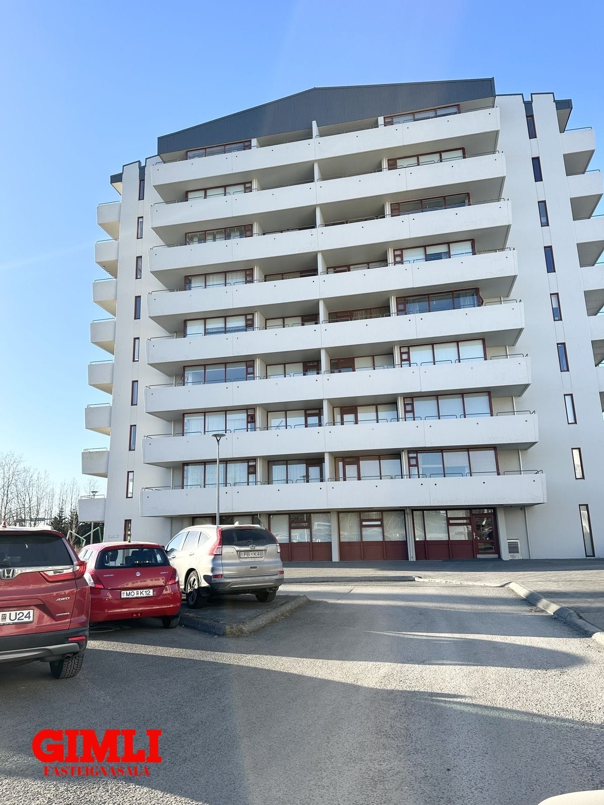 Mjög stórt bílaplan er framan við bygginguna og aðgengi þægilegt.