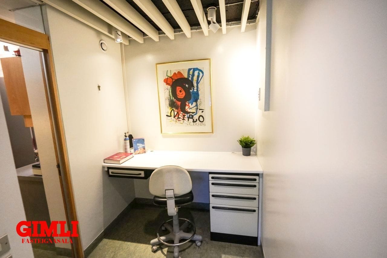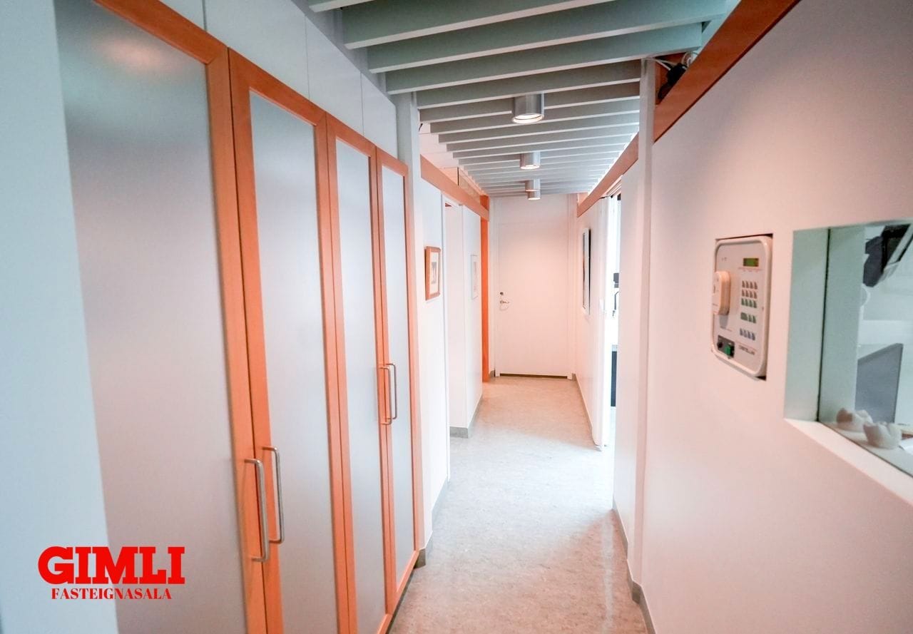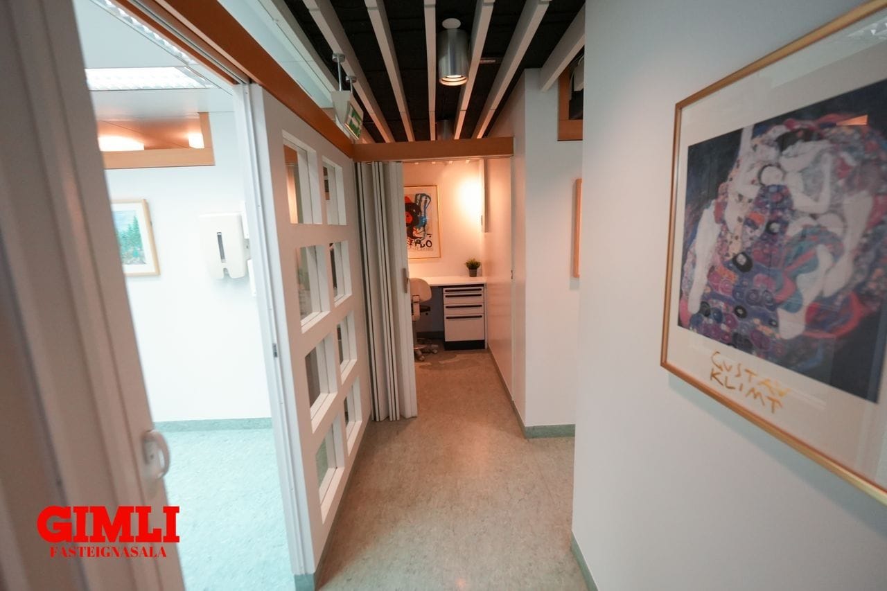 Húnæðið hefur verið nýtt sem tannlæknastofa og er allt mjög snyrtilegt og vel innréttað. Eign sem getur nýst sem skrifstofur eða undir margskonar þjónustu. Léttir veggir eru í rýminu og auðvelt að breyta skipulagi ef vill.