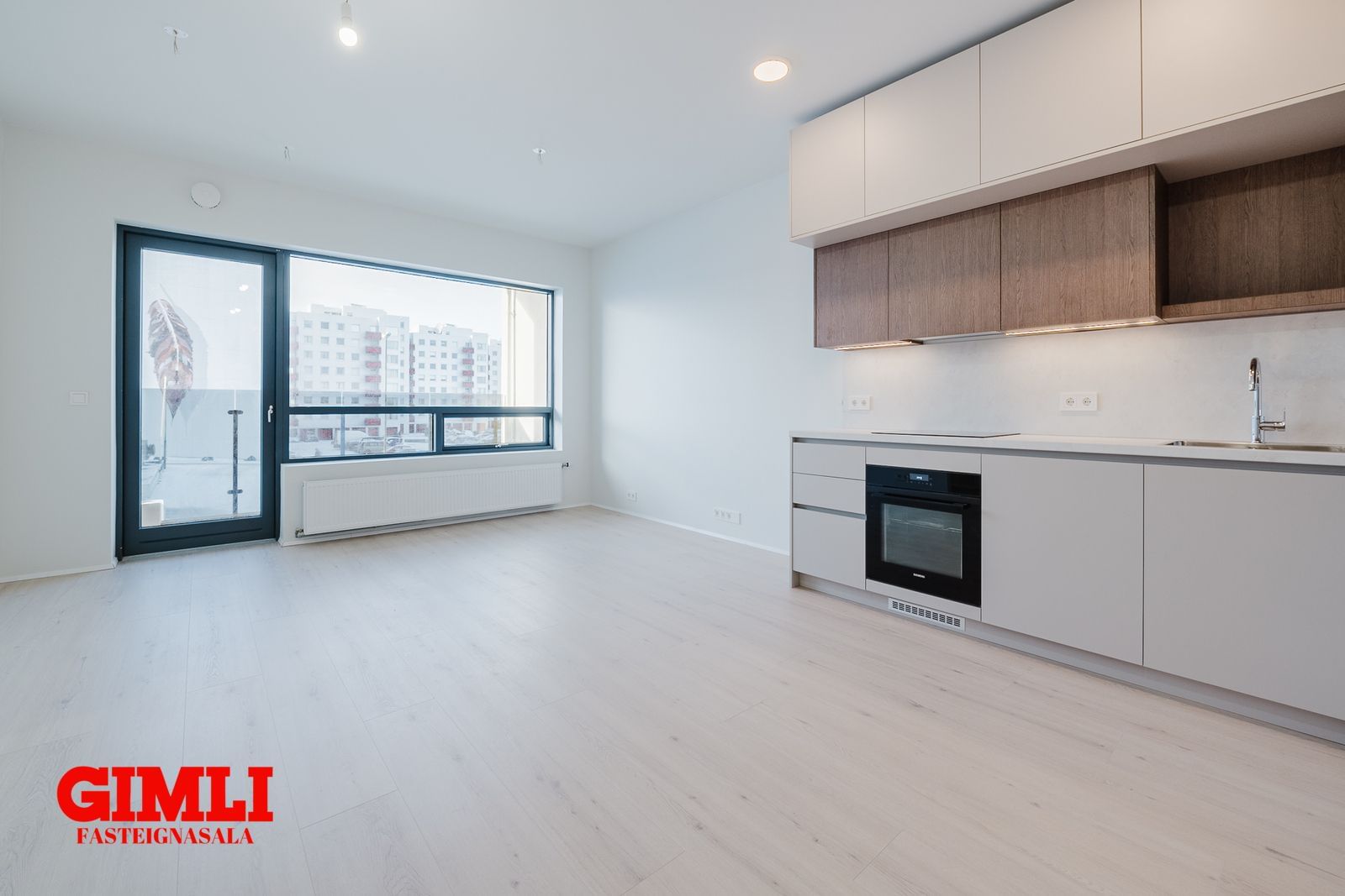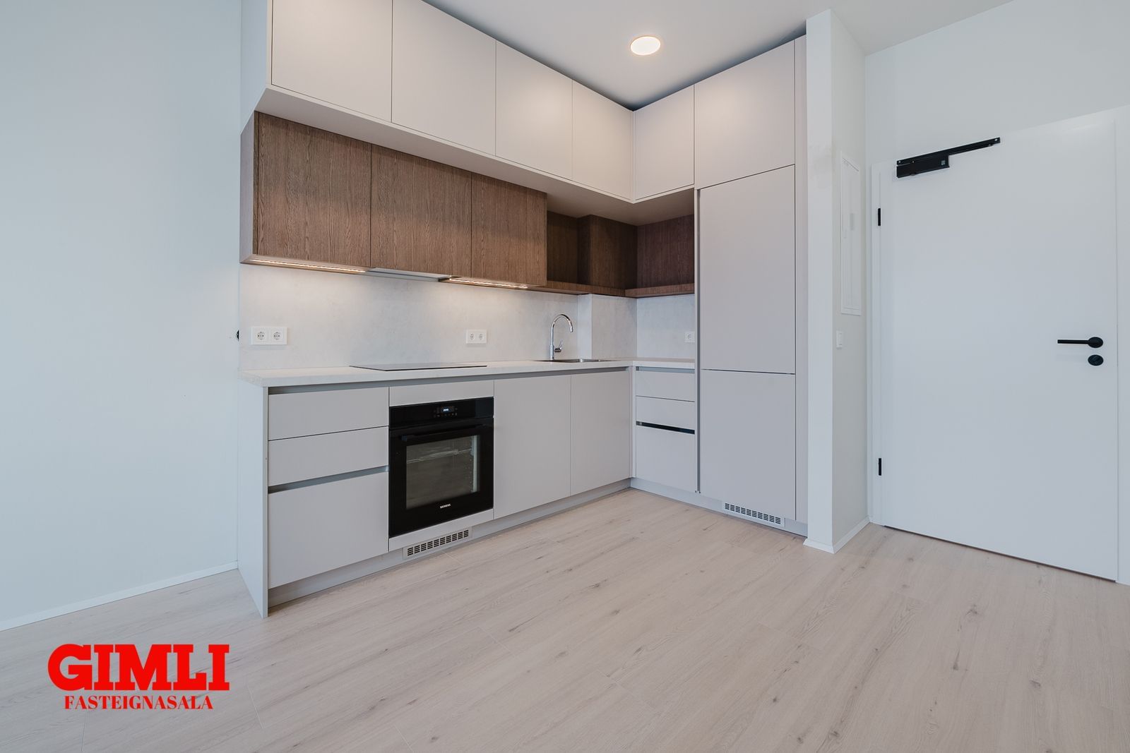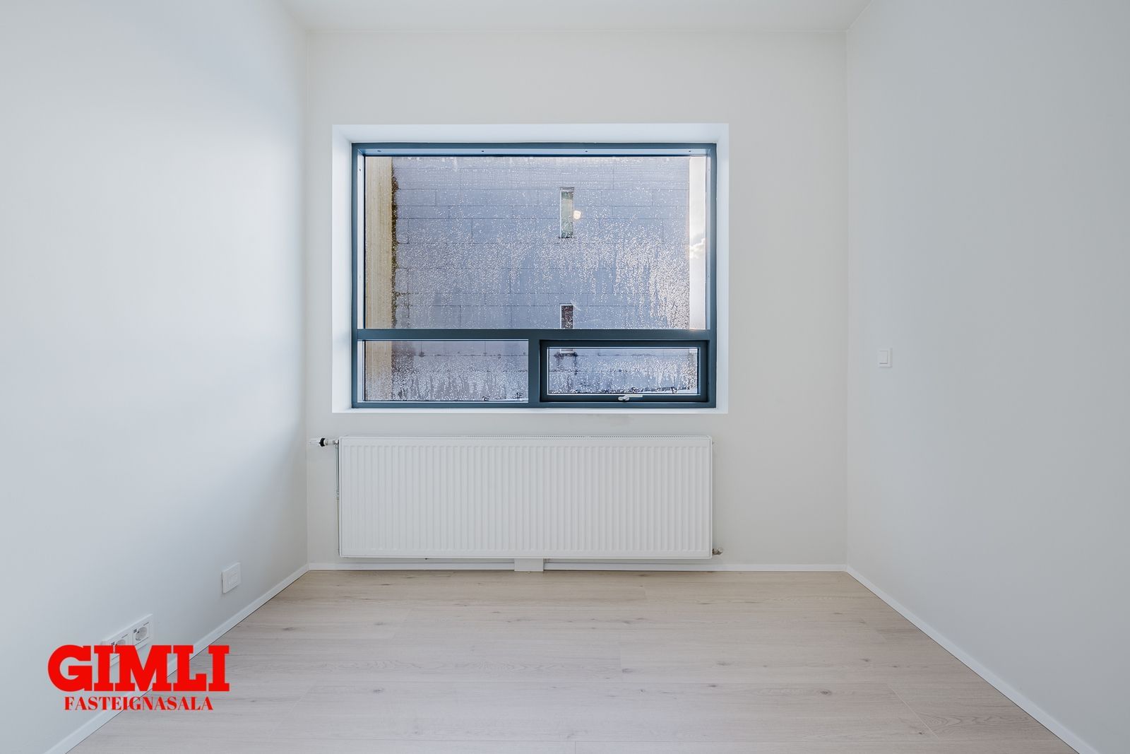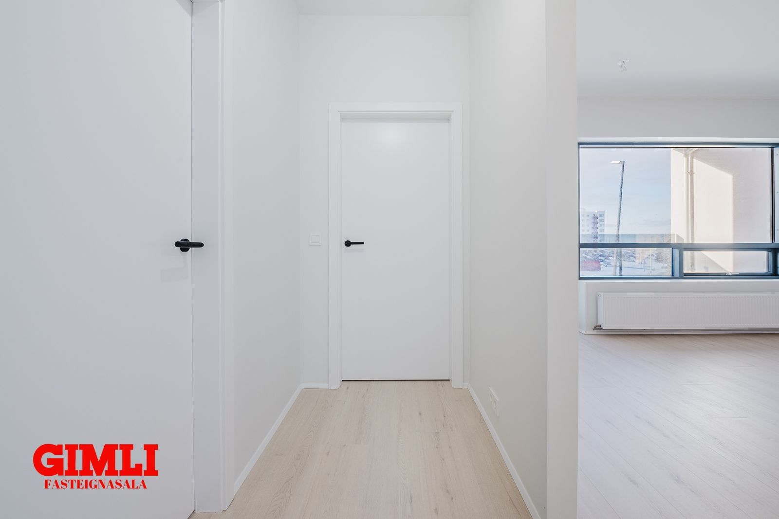 Falleg og vel skipulögð 3ja herbergja íbúð á 5.hæð í vönduðu nýju lyftuhúsi. Eignin sem er í heildina skráð 74,5 fm skiptist í opið rými þar sem eldhús, stofa, og borðstofa flæða saman með útgengi á skjólgóðar svalir, rúmgott hjónaherbergi, baðherbergi með þvottaaðstöðu og 5,4 fm geymslu. Vandaðar innréttingar, sérsmíðaðar frá viðurkenndum framleiðanda. Eldhústæki frá Siemens. Hvítar innihurðir frá Birgisson með svörtum hurðarhúnum. Fallegt ljóst harðparket á alrými og svefnherbergjum, baðherbergi flísalagt. Eignin er í útleigu og verður seld með leigusamningi kr. 314.000 pr/mán. Lokaúttekt (Bst.4) væntanleg í byrjun nóv. 2025.