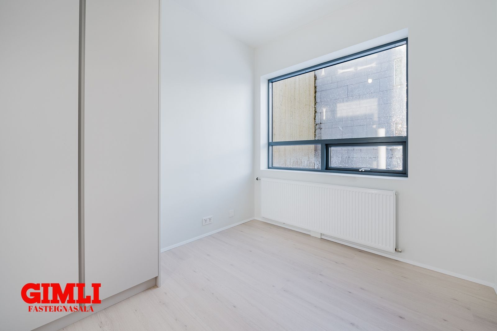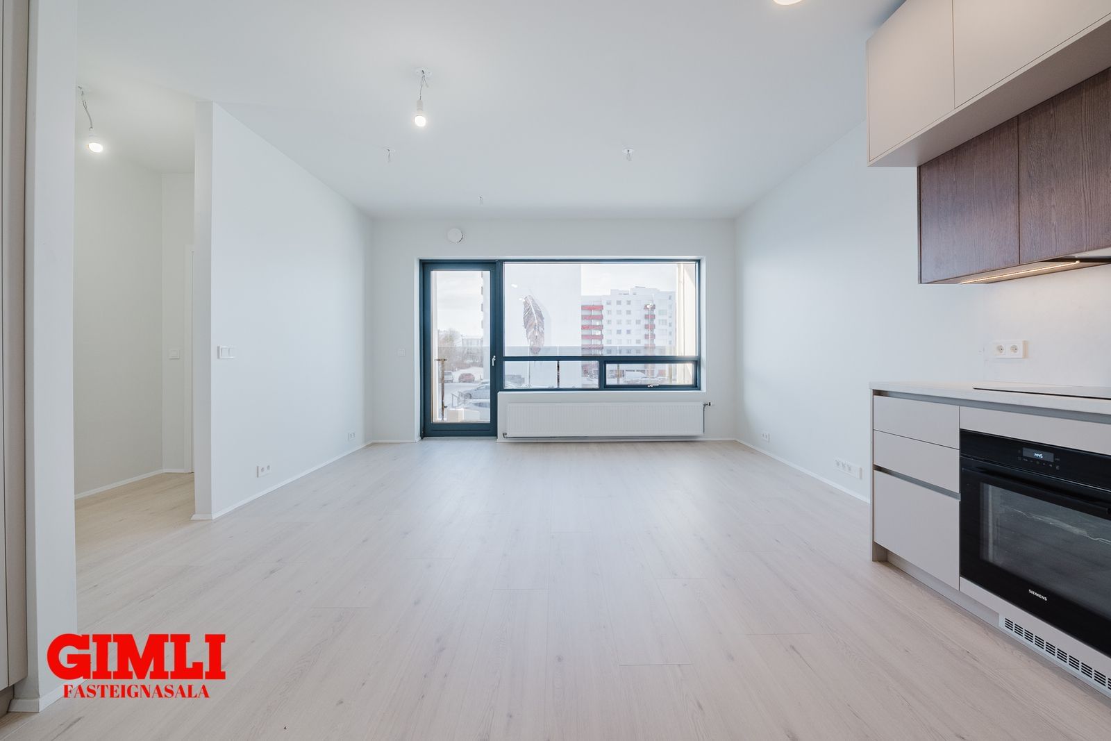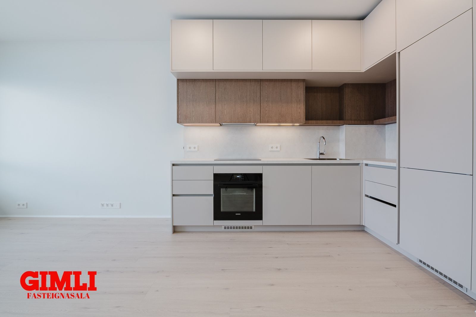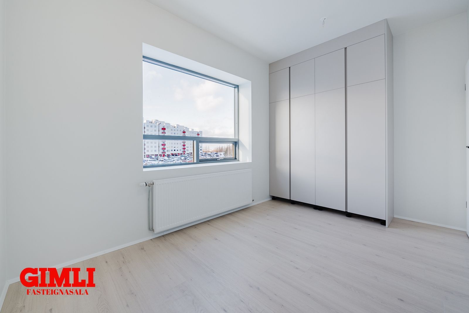 Falleg og vel skipulögð 3ja herbergja íbúð á 5.hæð í vönduðu nýju lyftuhúsi. Eignin sem er í heildina skráð 74,5 fm skiptist í opið rými þar sem eldhús, stofa, og borðstofa flæða saman með útgengi á skjólgóðar svalir, rúmgott hjónaherbergi, baðherbergi með þvottaaðstöðu og 5,4 fm geymslu. Vandaðar innréttingar, sérsmíðaðar frá viðurkenndum framleiðanda. Eldhústæki frá Siemens. Hvítar innihurðir frá Birgisson með svörtum hurðarhúnum. Fallegt ljóst harðparket á alrými og svefnherbergjum, baðherbergi flísalagt. Eignin er í útleigu og verður seld með leigusamningi kr. 314.000 pr/mán. Lokaúttekt (Bst.4) væntanleg í byrjun nóv. 2025.