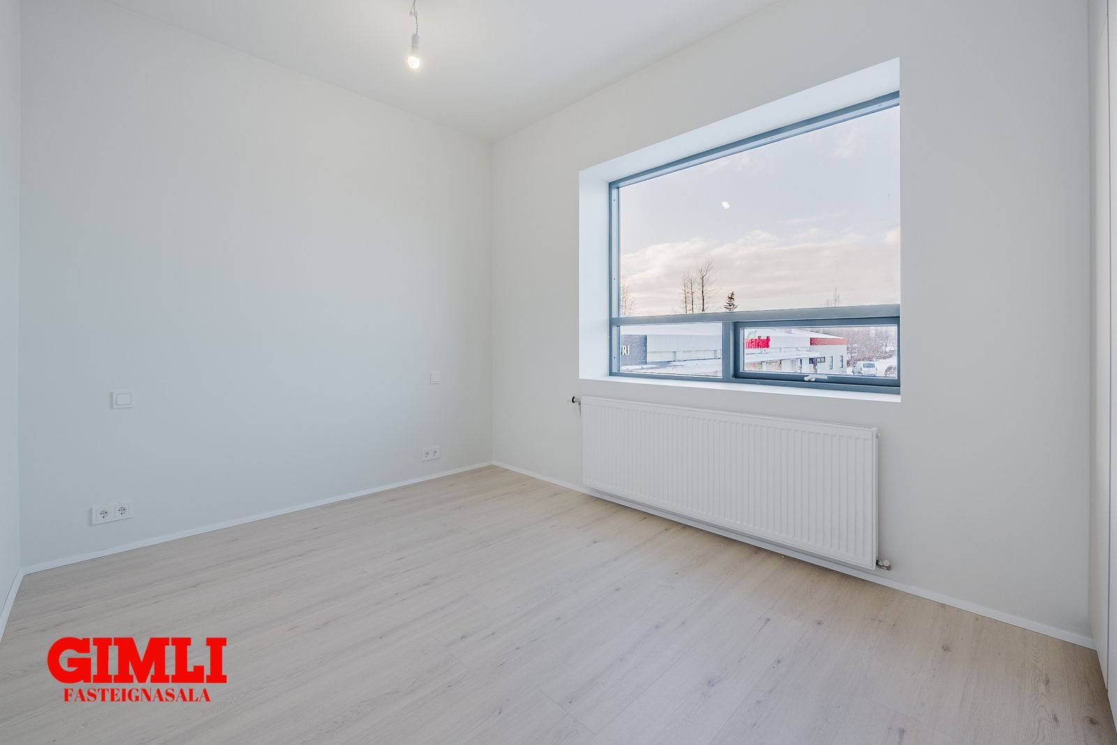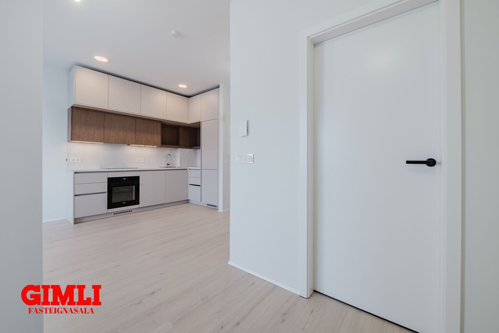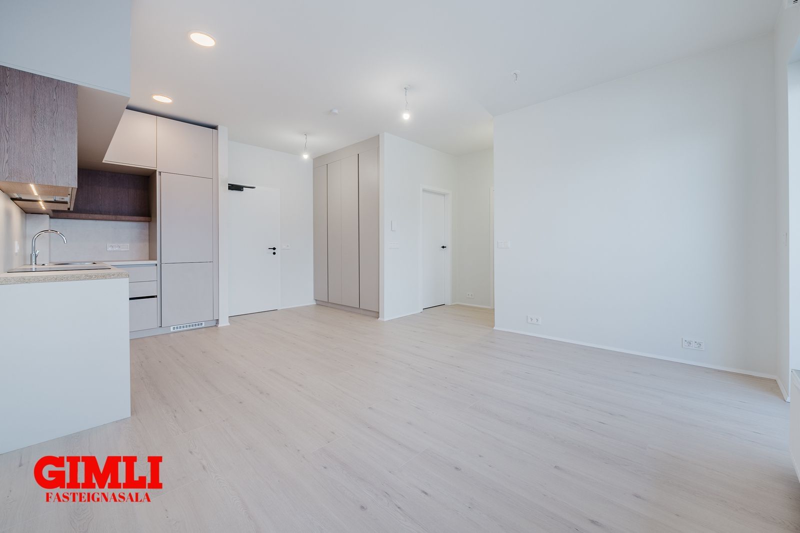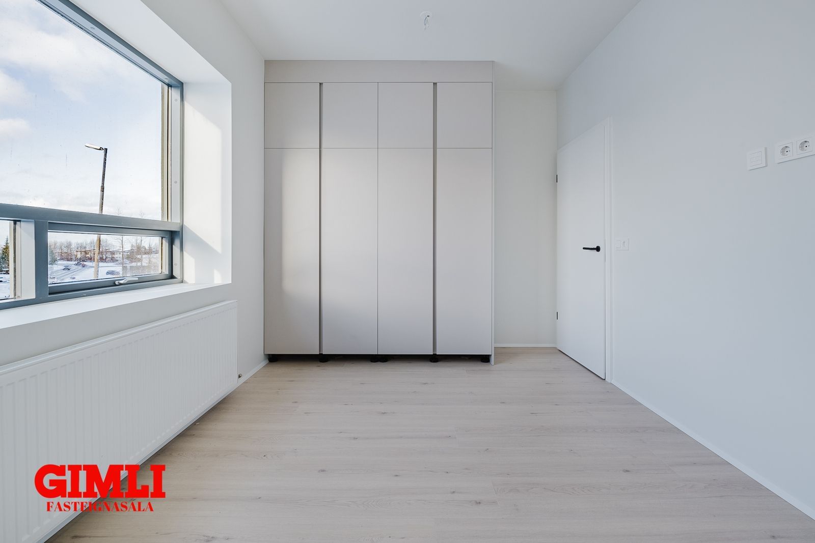 Falleg og vel skipulögð 3ja herbergja íbúð á 5.hæð í vönduðu nýju lyftuhúsi. Eignin sem er í heildina skráð 74,5 fm skiptist í opið rými þar sem eldhús, stofa, og borðstofa flæða saman með útgengi á skjólgóðar svalir, rúmgott hjónaherbergi, baðherbergi með þvottaaðstöðu og 5,4 fm geymslu. Vandaðar innréttingar, sérsmíðaðar frá viðurkenndum framleiðanda. Eldhústæki frá Siemens. Hvítar innihurðir frá Birgisson með svörtum hurðarhúnum. Fallegt ljóst harðparket á alrými og svefnherbergjum, baðherbergi flísalagt. Eignin er í útleigu og verður seld með leigusamningi kr. 314.000 pr/mán. Lokaúttekt (Bst.4) væntanleg í byrjun nóv. 2025.