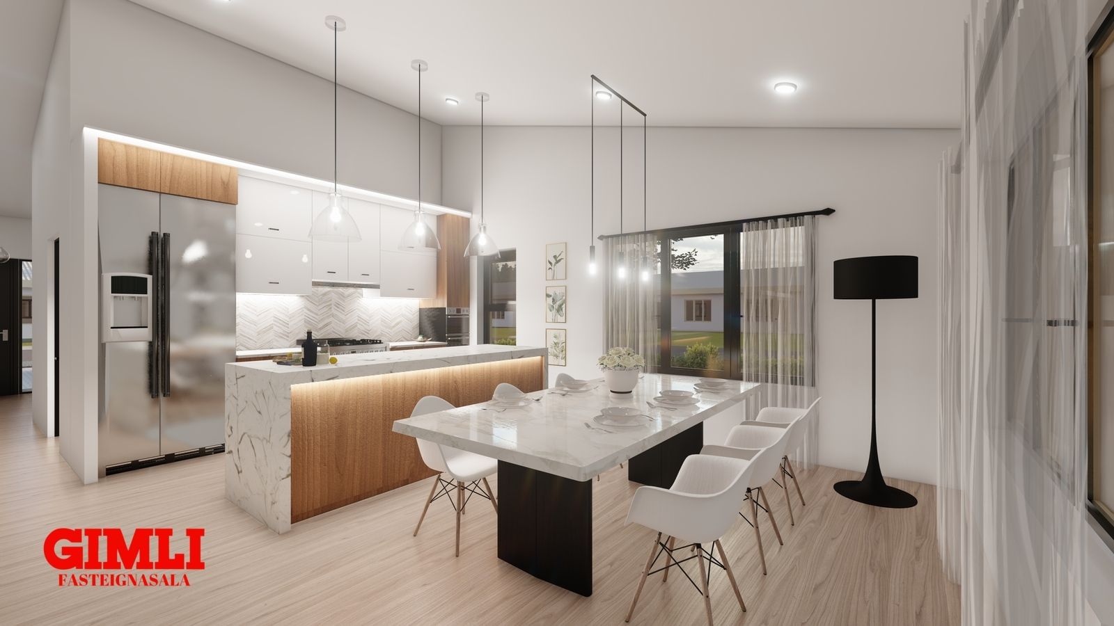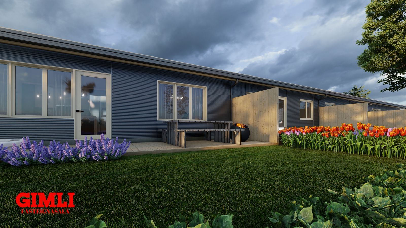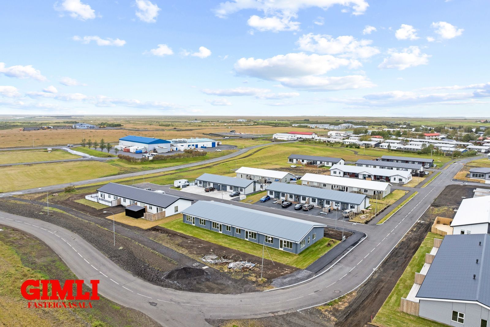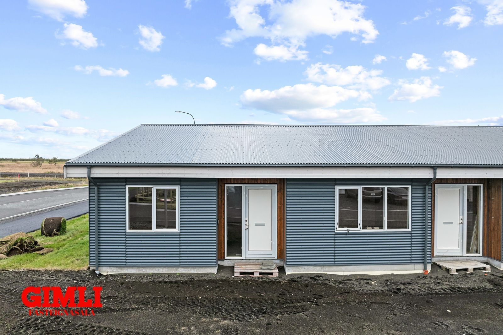 SÉRLEGA VANDAÐ 4RA HERBERGJA ENDARAÐHÚS Á EINNI HÆÐ MEÐ GÓLFHITA OG UPPTEKNUM LOFTUM. EIGNIN SEM ER Í HEILDINA SKRÁÐ 120,7 FM SKIPTIST Í FORSTOFU, ELDHÚS/ STOFU/ BORÐSTOFU SEM FLÆÐA SAMAN Í OPNU ALRÝMI MEÐ ÚTGENGI Á VERÖND, ÞRJÚ SVEFNHERBERGI, BAÐHERBERGI MEÐ ÞVOTTAAÐSTÖÐU OG GEYMSLU. HÚSIÐ AFHENDIST VIÐ KAUPSAMNING, FULLBÚIÐ AÐ UTAN OG AÐ INNAN TILBÚIÐ TIL INNRÉTTINGA (BST.3). LÓÐ ÞÖKULÖGÐ OG BÍLAPLAN FRÁGENGIÐ MEÐ DRENMÖL.Nánari upplýsingar veita: Ólafur B. Blöndal Löggiltur fasteignasali í síma 6900811, olafur@gimli.is og Lilja Hrafnberg Viðskiptafræðingur/Löggiltur fasteignasali, í síma 8206511, lilja@gimli.is NÁNARI LÝSING:Byggingaraðili er Straumar byggingafélag.Húsið er timburhús með steyptum sökklum og gólfplötu. Útveggir eru klæddir að utan með báruáli og standandi olíuborinni furu í innskotum við aðalinngang. Báruál er á þaki og þakkantur er klæddur hvítum furupanil. Gluggar og hurðir eru úr timbri klæddir með áli. Útiljós er í innskoti við aðalinngang og við hurð útí garð. Bílaplan er jafnað og frágengið með drenmöl. Tvö ídráttarrör eru út í garð, t.d fyrir pott og rafmagn. Lagt er ídráttarrör fyrir rafbílahleðslu frá töflu og út fyrir sökkul framan við hús